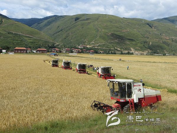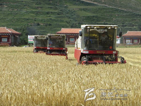本網(wǎng)訊(胡筱紅 龍正芳 文/圖) 高原的八月是絢麗多彩的時節(jié),是糧食收獲的季節(jié)。爐霍縣300畝全程機械化青稞作業(yè)示范片項目機收工作于8月20日正式啟動,共出動大型聯(lián)合收割機5臺、拖拉機5臺同時作業(yè),正常情況下一臺收割機一天可以收割65至70畝,青稞示范片不出5天就能完成收割。對比以往的種植和收獲方式,全程機械化作業(yè)從播種到收獲帶來的社會效益及經(jīng)濟效益都遠遠高于傳統(tǒng)種植方式。
