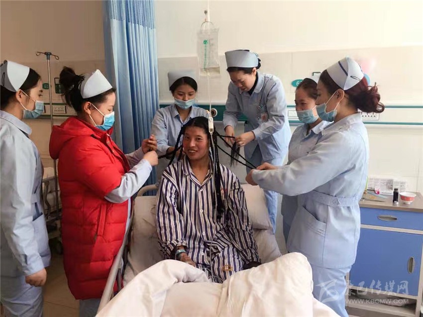 手術(shù)前,肝膽二科的護士們按照藏族習俗,為降東瑪編制吉祥發(fā)辮。