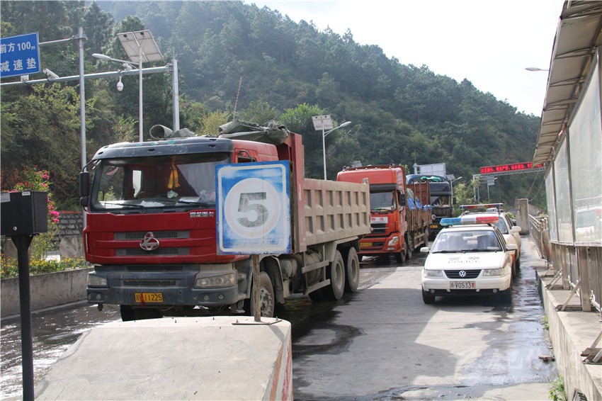 去年10月21日,全國將執(zhí)行新的貨運車裝載標準,將降低貨車運載量。20日,瀘定檢測站迎來了大貨車運輸高峰,當天通過瀘定檢測站的進州貨車就高達953輛,陡然增加的車流量,讓瀘定檢測站執(zhí)法人員忙得不可開交。凌晨1點左右,因距離檢測站數(shù)公里外道路正在施工,造成交通大面積擁堵。盡管不在工作職責范圍內,瀘定檢測站除值班人員留守外,交通路政、運管、公安交警、特警全員上陣疏導交通?;謴屯ㄐ袝r,已經(jīng)是凌晨3點過。對于這樣的“家常便飯”,執(zhí)法人員已經(jīng)司空見慣?!安荒茉跈z測站周邊造成交通擁堵,這是我們的職責”。
