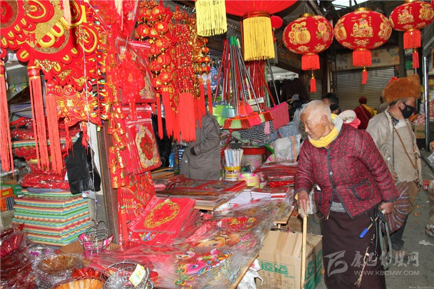 在理塘縣各個(gè)貿(mào)易市場(chǎng),紅燈籠、春聯(lián)、“?!弊值裙?jié)日飾品也已擺上街頭,氣氛祥和又喜慶。同時(shí),藏族群眾也迎來(lái)采購(gòu)的繁忙時(shí)刻,人們紛紛走上街頭,挑選吃、穿、用、玩的年貨,過(guò)年的氣氛越來(lái)越濃了。 (葉強(qiáng)平)