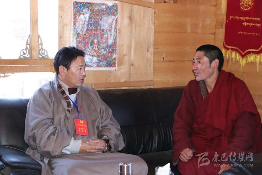 宣講團成員與僧人交流。新龍縣委中心報道組 攝