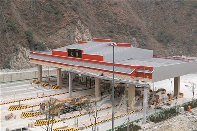 齊整的標(biāo)志線、指示路標(biāo),安全的隔離柵、防護(hù)網(wǎng),醒目的信號(hào)燈、提示牌……道路附屬設(shè)施井然齊備,體驗(yàn)車(chē)隊(duì)從ETC車(chē)道剛駛出,高懸著“雅康高速歡迎您”電子指示牌的瀘定收費(fèi)站出現(xiàn)在眼前,二郎山隧道近在咫尺。