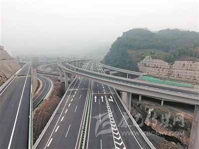 道路兩旁山嶺逶迤,觸目所見(jiàn)的高速公路,幾乎全都搭建在山腰帶際之間,如同蒼山綠水上的一條“彩練”。山河與路橋隧的錯(cuò)落有致,車(chē)上的人便更有一種與藍(lán)天白云的距離越來(lái)越近的錯(cuò)覺(jué)。沿線綠化因地制宜,打造水體山體景觀,“車(chē)在路上行,路在景中生,人在畫(huà)中游”的美感油然而生。