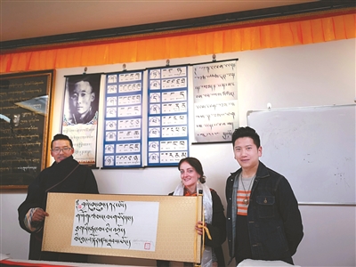 本網(wǎng)訊 前段時(shí)間,一篇微信文章《天空之城新玩法,老外學(xué)寫藏書法》刷爆了甘孜的微信朋友圈,法國女孩理塘學(xué)藏文書法的消息傳遍大街小巷。如今,這個(gè)叫寶林的女孩已經(jīng)回到法國,她給教授她藏文書法的益西老師打來電話,感謝對她的教授。