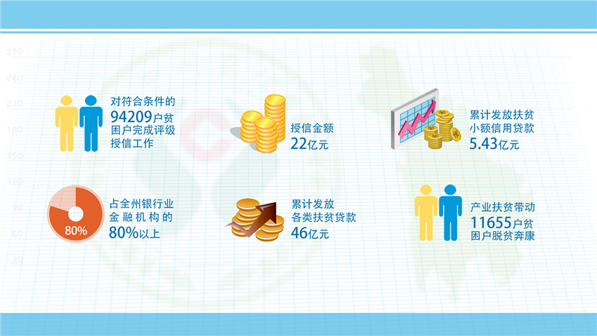 ——強化信貸扶持。緊緊圍繞全州脫貧退出總體目標,打破各縣劃分片區(qū)、劃分任務的局面,使脫貧攻堅工作從行政手段調(diào)整到市場競爭和民生工程兼顧,堅持“三個一百”——即百分百對符合條件的建檔立卡貧困戶進行評級授信,授信面達到100%;百分百滿足貧困戶有效信貸需求;百分百滿足產(chǎn)業(yè)帶動扶貧項目有效信貸需求,加強與18個縣黨委政府的溝通對接,瞄準每個縣的地方特產(chǎn)產(chǎn)業(yè),因地制宜,為每個縣量身打造“一縣一策”的金融服務方案,累計發(fā)放各類產(chǎn)業(yè)、項目帶動扶貧貸款20.69億元。