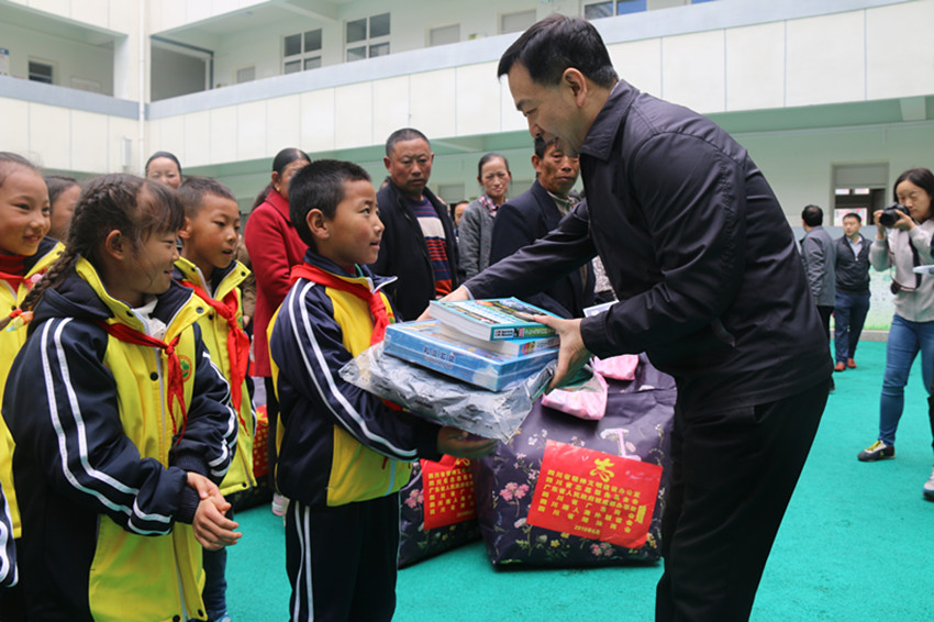 當(dāng)天上午,“粵企代表為藏區(qū)困難群眾、貧困學(xué)生和留守兒童捐贈(zèng)物資發(fā)放儀式”在康定市實(shí)驗(yàn)小學(xué)舉行,廣東企業(yè)代表向該校20名留守兒童和困難學(xué)生發(fā)放了包括玩具、書(shū)包、圖書(shū)在內(nèi)的節(jié)日禮物,向康定市的30戶家庭困難的群眾發(fā)放了棉被、洗漱包、保溫杯等慰問(wèn)品。