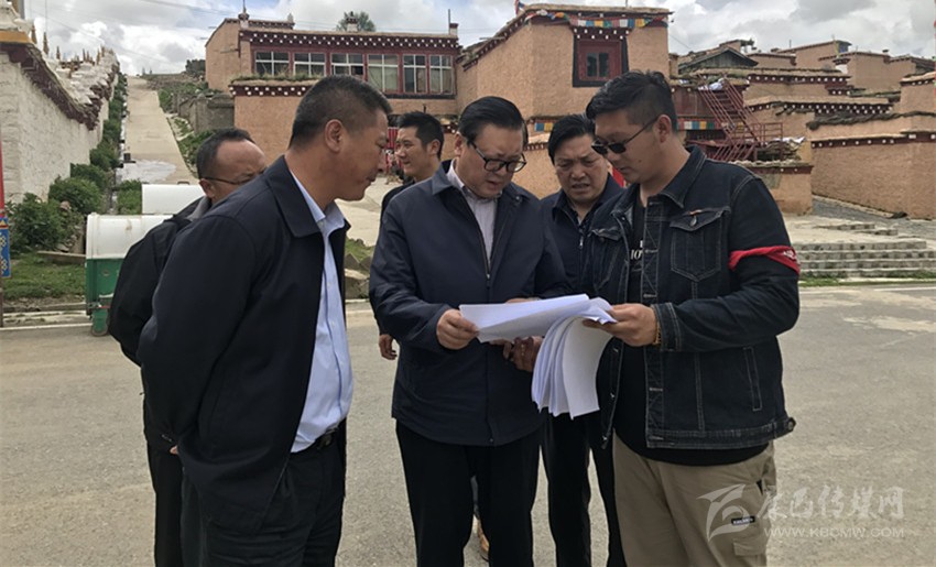州委副書記、政法委書記羅振華(中)在理塘縣調研指導掃黑除惡工作。