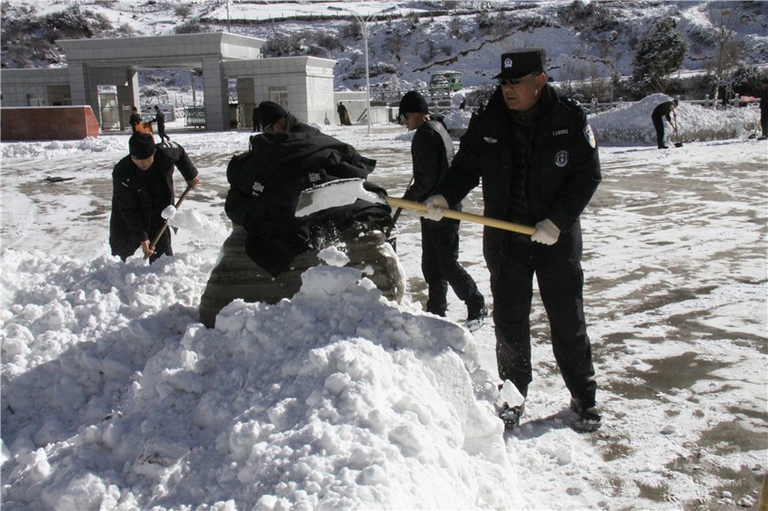 向學馬帶領干警清除積雪。