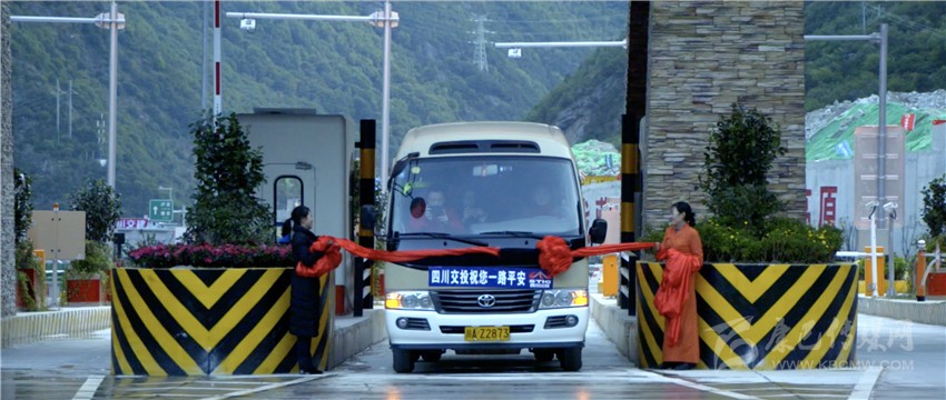 “木雅古碉”建筑矗立兩旁、六出四進通道一字排開;巨大熒幕流光溢彩,連接通道窗明幾凈;從無人機航拍畫面可以看到,一面巨大的五星紅旗,已在站頂平層鋪展開來……9月28日上午8時整,一輛客車從升航特大橋駛來,撞破紅綢駛向康定城,旁邊車道上等待多時的車輛依次行進,雅康高速公路上規(guī)模最大的收費站——康定收費站正式啟用,康定連接線和入城大道通車?!翱刀ㄟB接線建成后將極大提高雅康高速公路進入康定城區(qū)車輛通行效率、有效改善康定入城交通的擁堵狀況。”藏區(qū)高速公路公司相關負責人如是說。