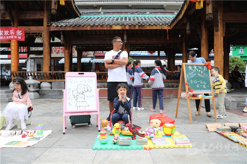 “這個玩具1元錢賣不賣?”“已經(jīng)很便宜啦!最低3元錢。”5月31日,瀘定橋廣場人流涌動、熱鬧非凡,叫賣聲不絕于耳,不少“小顧客”在各個攤位之間,認真地挑選自己心儀的商品,有模有樣地討價還價,廣場變成了熱鬧的自由貿(mào)易市場。