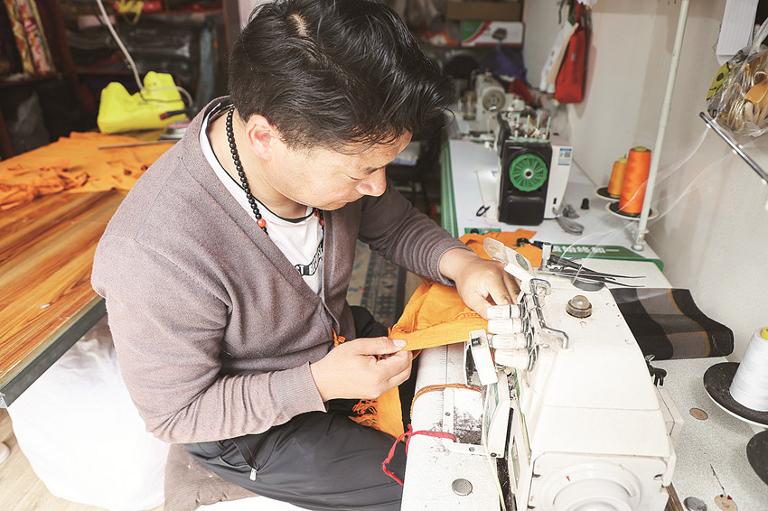 扎西澤仁準備上機縫合布料