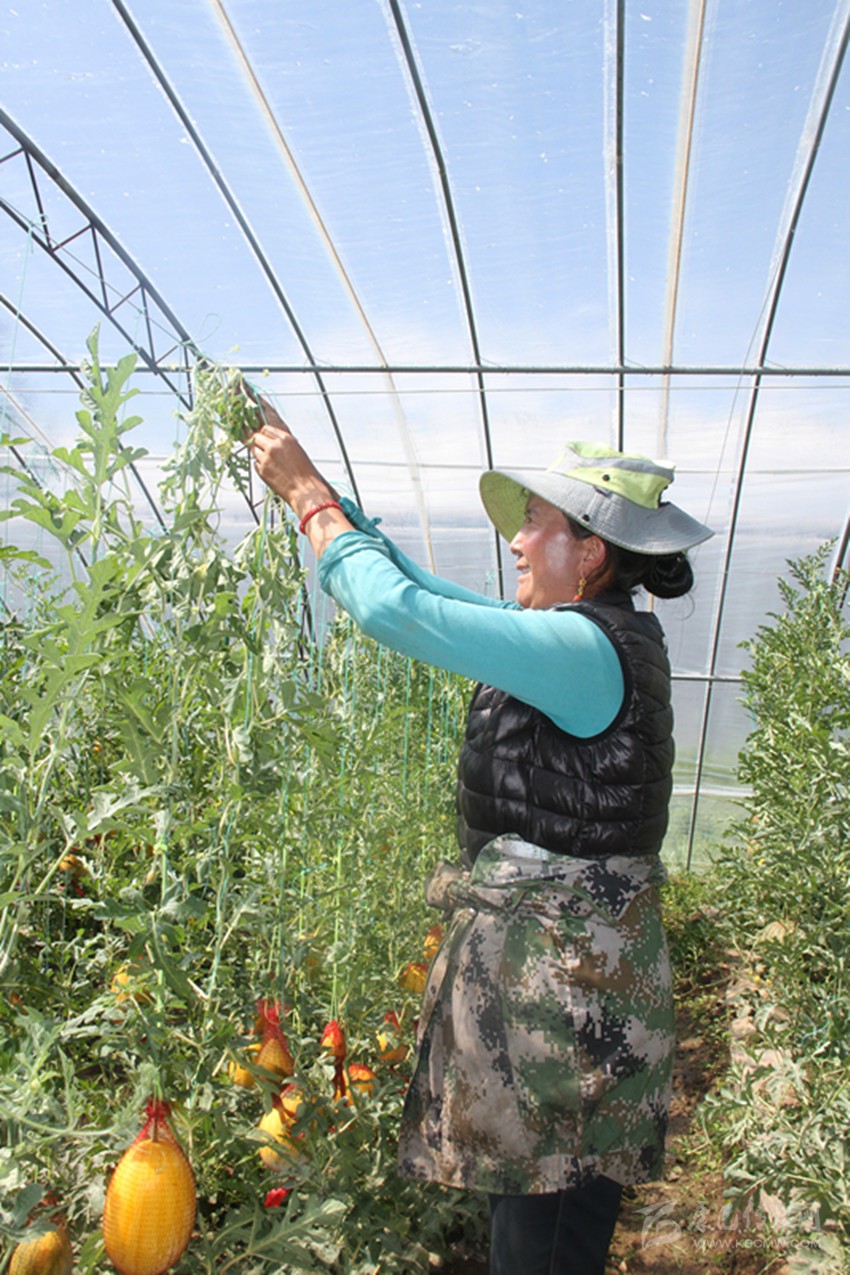 2017年底,澤仁正呷家5口人在“飛地”設(shè)施蔬菜大棚租賃收入分紅1440元,加上她在園區(qū)打工的1萬多元,領(lǐng)取的各項(xiàng)惠民資金,順利實(shí)現(xiàn)脫貧。讓她更高興的是,在家門口不遠(yuǎn)打工,還可照顧家庭。現(xiàn)在園區(qū)龍頭企業(yè)瑪吉阿米已建成40座3萬平方米冬暖式蔬菜大棚,露地蔬菜生產(chǎn)基地1050畝,種植了大棚西瓜、番茄、彩椒和茄子等蔬菜產(chǎn)品供應(yīng)當(dāng)?shù)丶俺啥嫉鹊厥袌?chǎng),年產(chǎn)值達(dá)到300多萬元,帶動(dòng)下依村227人直接受益,20戶貧困戶戶均增收1500元。2017年底,下依村實(shí)現(xiàn)整村脫貧。