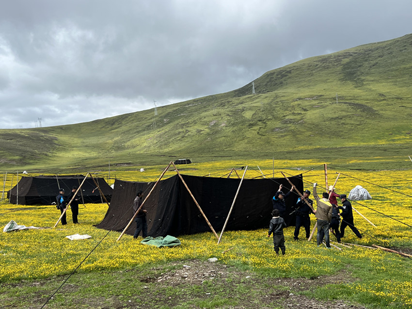 隨著安孜鄉(xiāng)門馬一、二村牧民的的最后一頂帳篷搭建完成,標(biāo)志著整個(gè)安孜鄉(xiāng)夏季牧場轉(zhuǎn)場結(jié)束,20000多頭牦牛安全遷徙至夏季牧場。