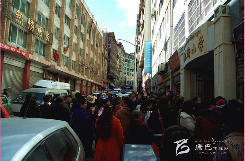 康定東大街小學門口擁堵情況。