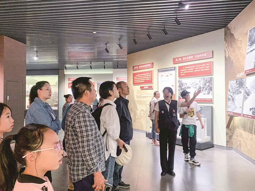 10月1日,瀘定橋游人如潮,瀘定橋革命文物陳列館和勇士路長征文化主題浮雕群周邊道路車水馬龍。游客們仔細觀看館藏文物、資料,細心聽取講解員講解,憶苦思甜,深刻體會那段跌宕起伏、波瀾壯闊的紅色歲月。隨著景區(qū)景點基礎(chǔ)設(shè)施的完善,不少游客滿懷激情重走長征路,懷古賞今,感受紅色文化無窮魅力。