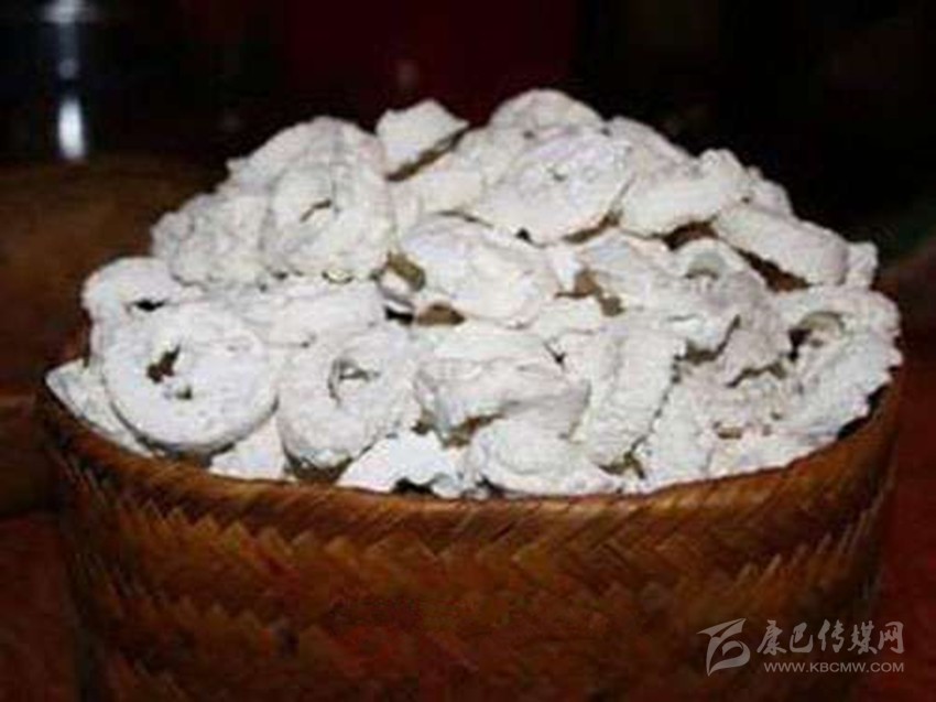 奶渣與酥油相伴而生,從牛奶奶中提制而成。把牛奶打制分離出酥油以后,剩下奶水用火煮沸后冷卻即成酸奶水,把它倒入竹制斗形濾水留在竹斗濾器中的就是奶渣。奶渣白色,味酸,具有極強(qiáng)的助消作用,外出藏民常帶奶渣以防水土不適。