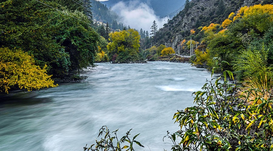 源于康定縣境西北與道孚縣交界處的柯哲德沼澤地帶,為雅礱江的一級(jí)支流,至普沙絨鄉(xiāng)(宜代)折向西注入雅礱江。進(jìn)入森林公園后屬高山峽谷地帶,相對(duì)高差1200米,河流切割深,地形陡峻,全長30.3公里,平均寬度為30米,最寬處達(dá)80米左右,平均水深5米,最深處可達(dá)30余米,落差2511米,多年平均流量3.47立方米/秒,枯水期僅0.7立方米/秒。兩岸次生天然蒼茫,環(huán)境十分清幽。